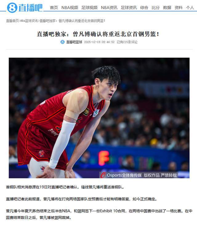 直播吧:直播吧獨(dú)家:曾凡博確認(rèn)將重返北京首鋼男籃!